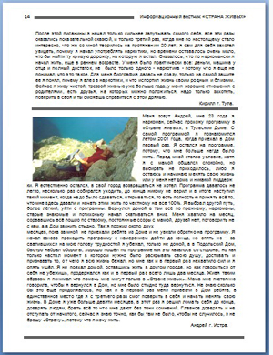Журнал выпускается центром по реабилитации наркозависимых "Страна живых".